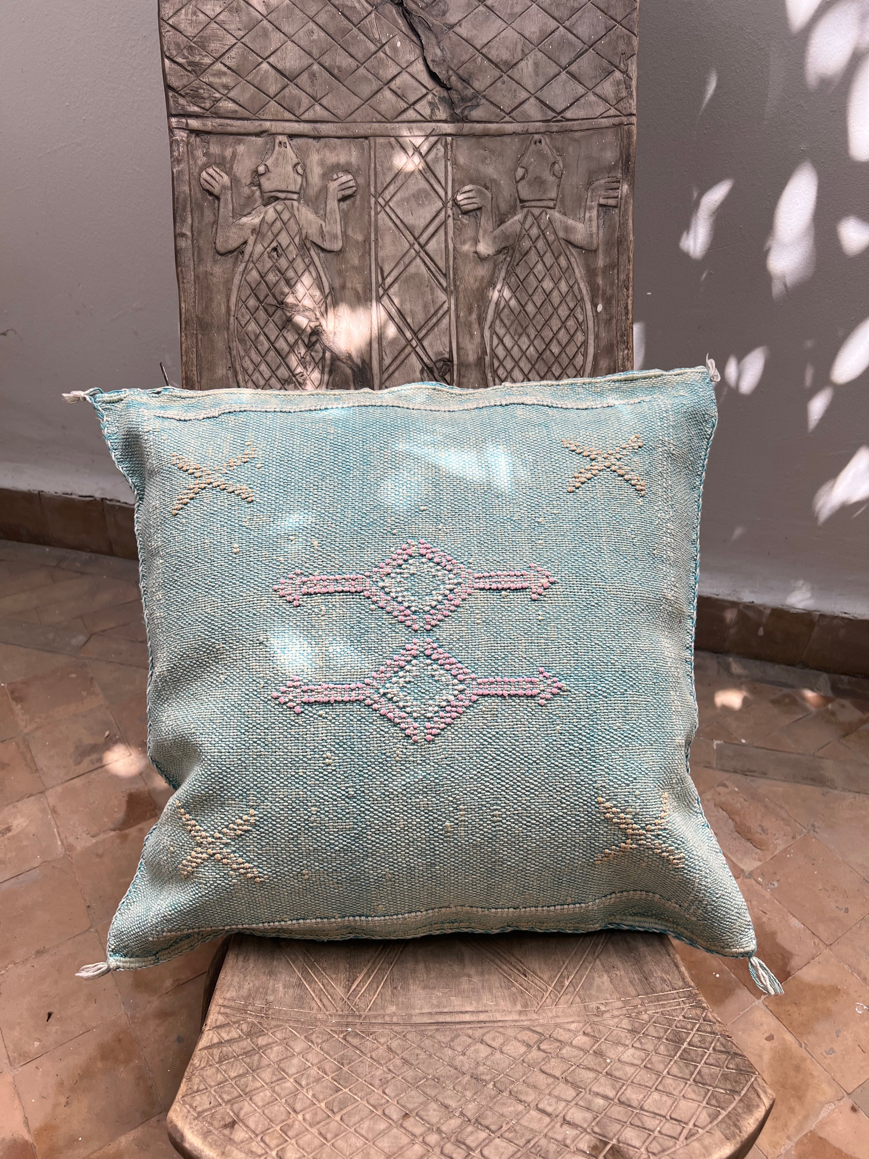 Cactus zijde kussen - blauw