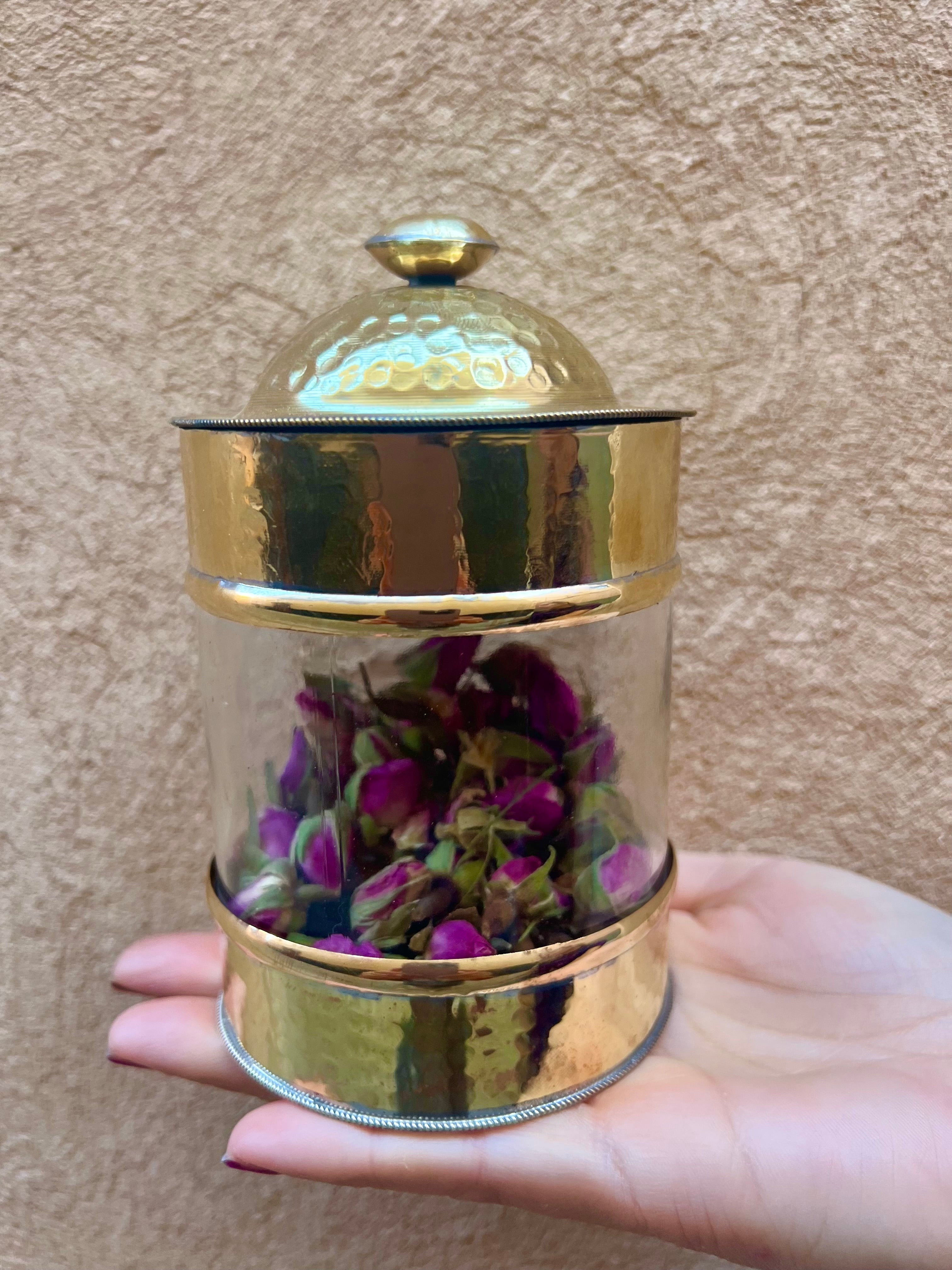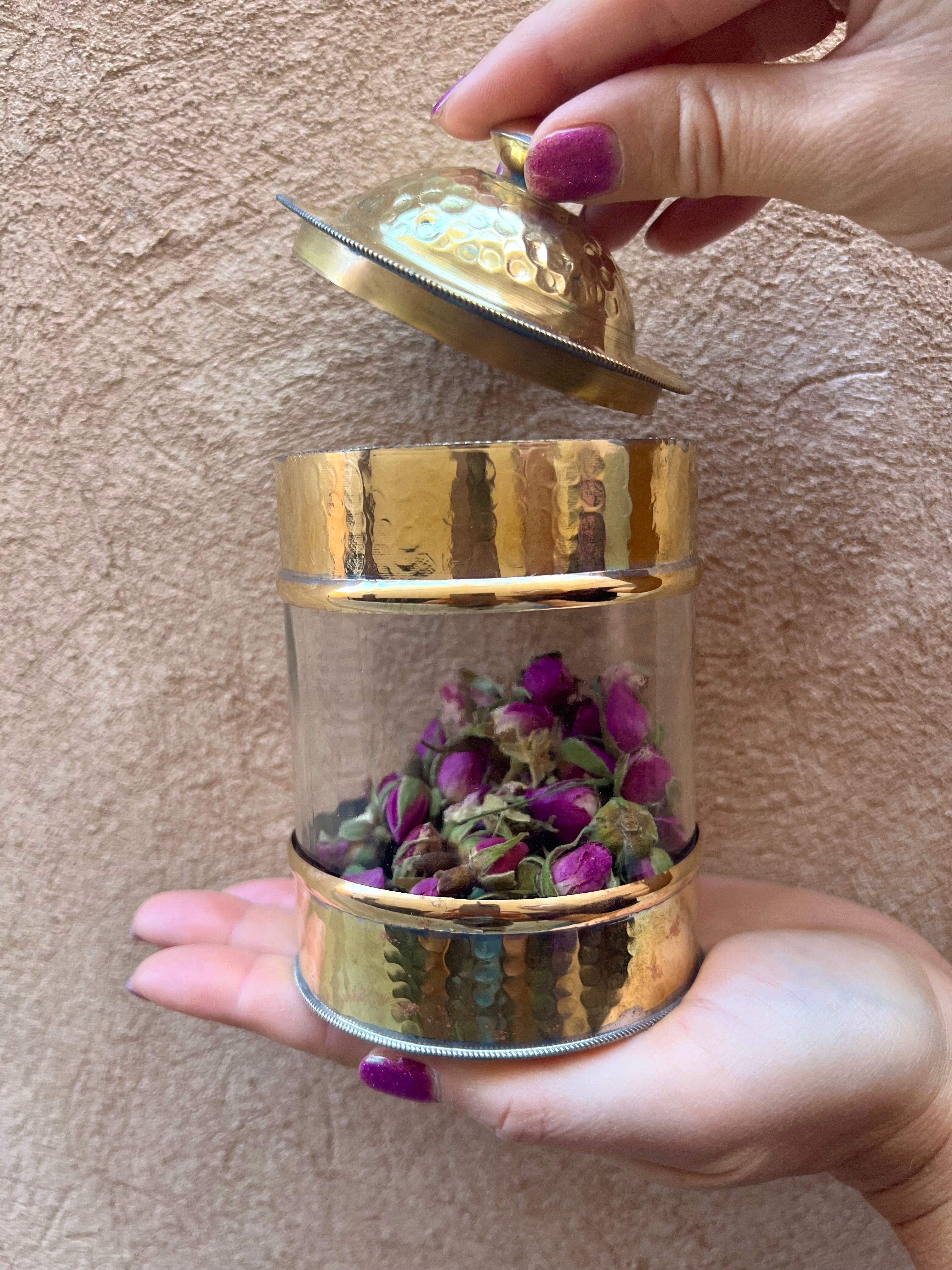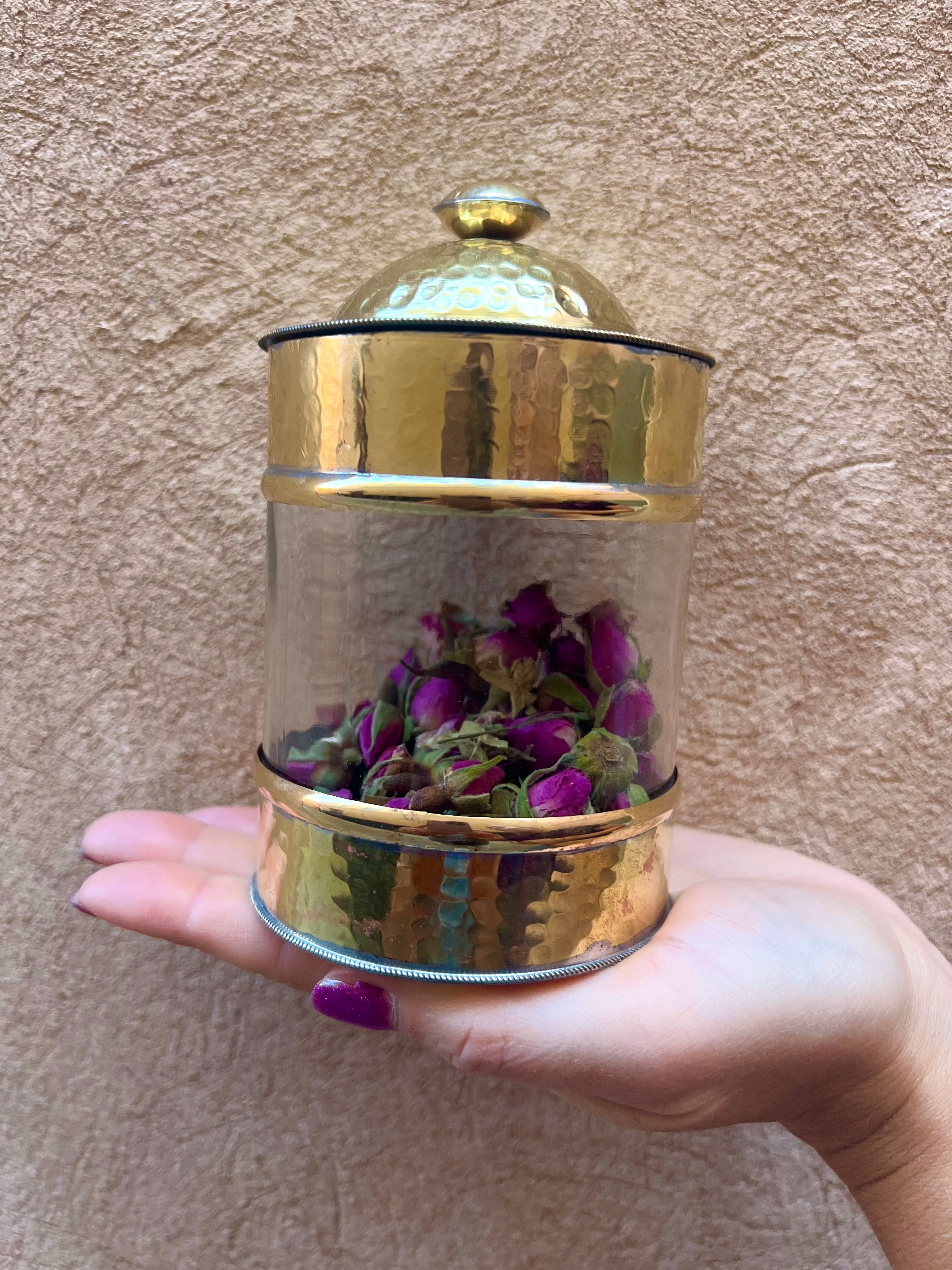 Het handgemaakte potje is voorzien van een deksel en is daardoor perfect om kruiden, sieraden of bijv. potpourri in te bewaren.