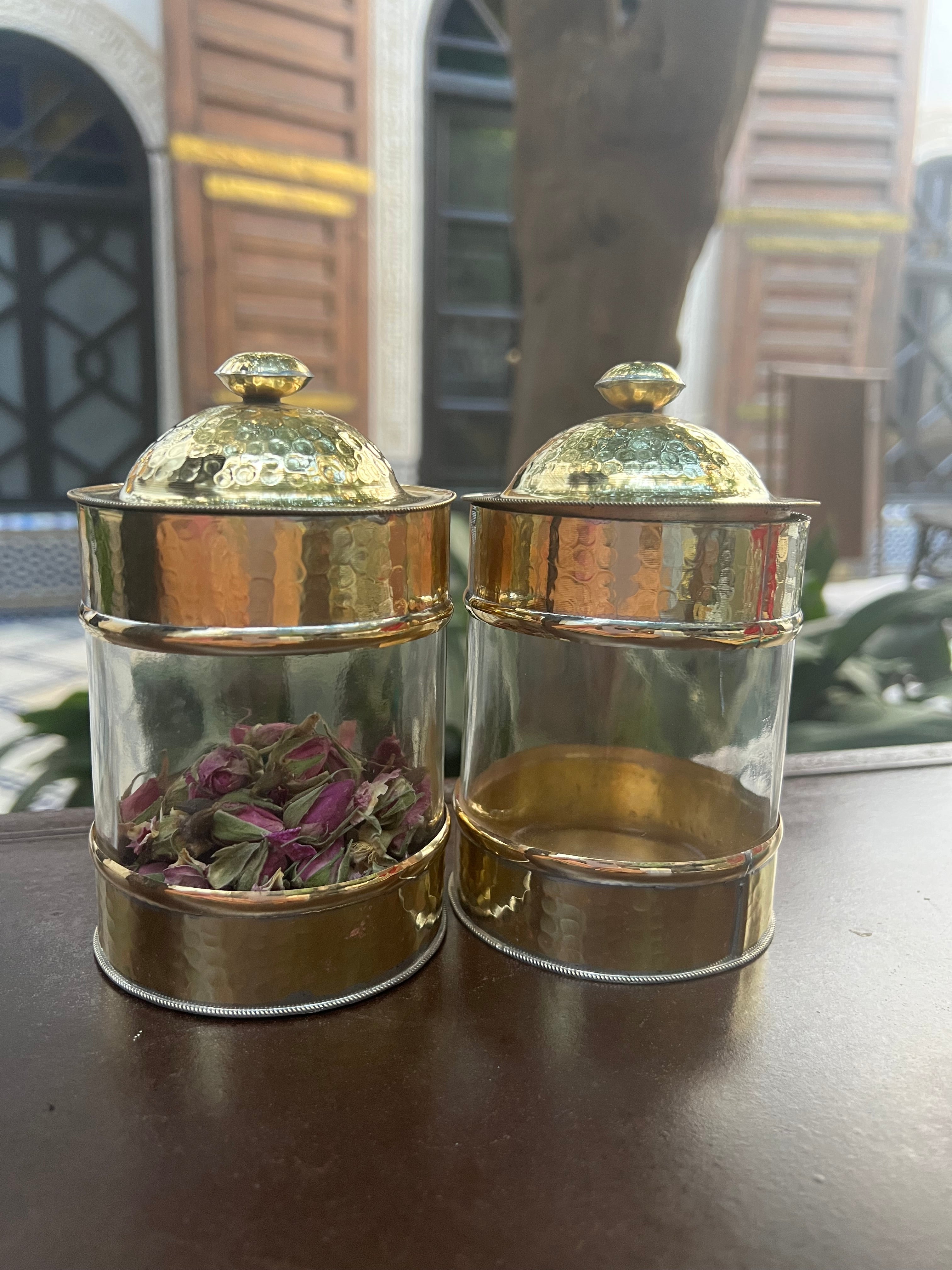 Glazen opbergpot met messing!