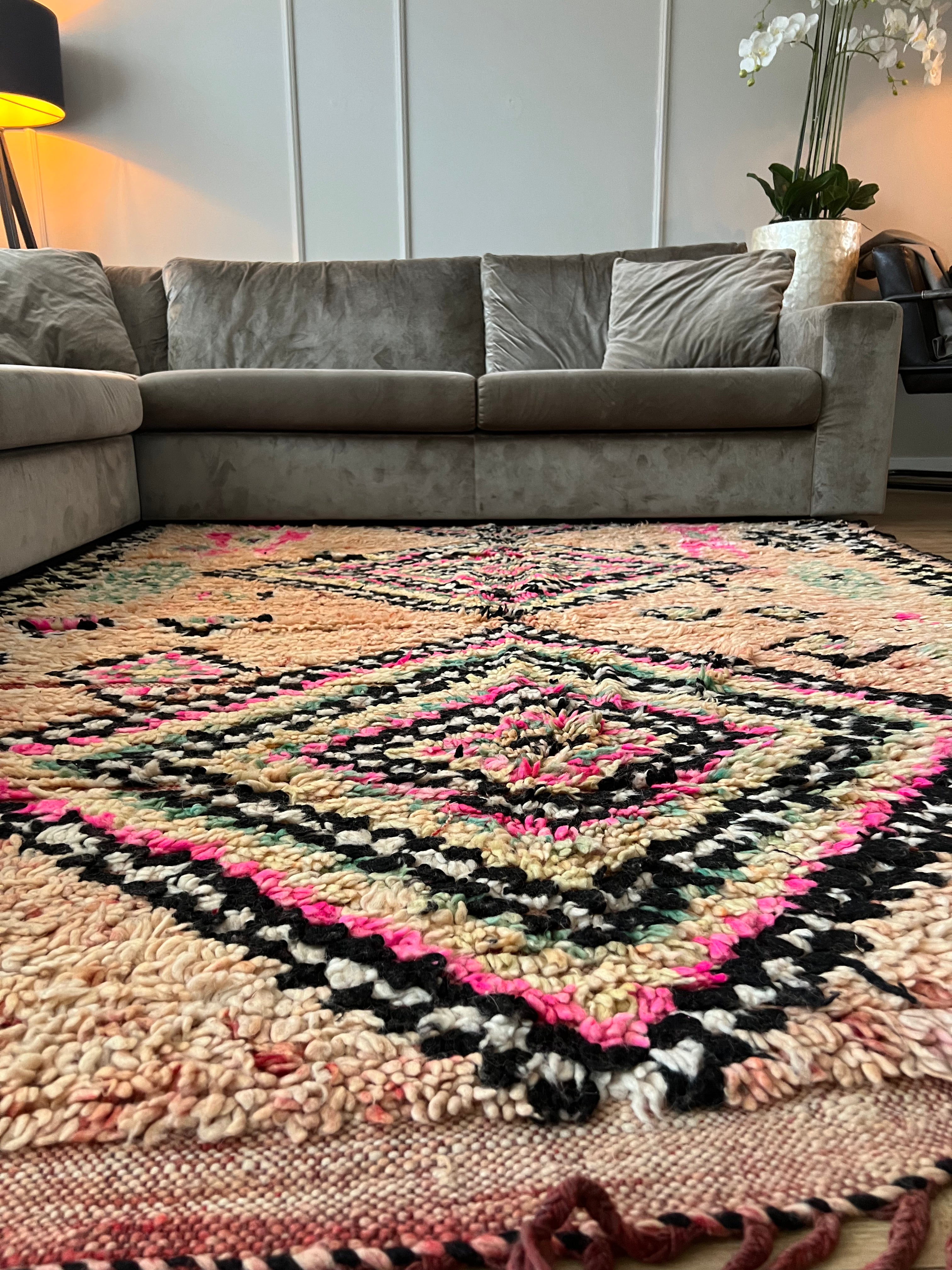 De geometrische patronen en prachtige kleuren zijn typisch voor Boujaad-tapijten.