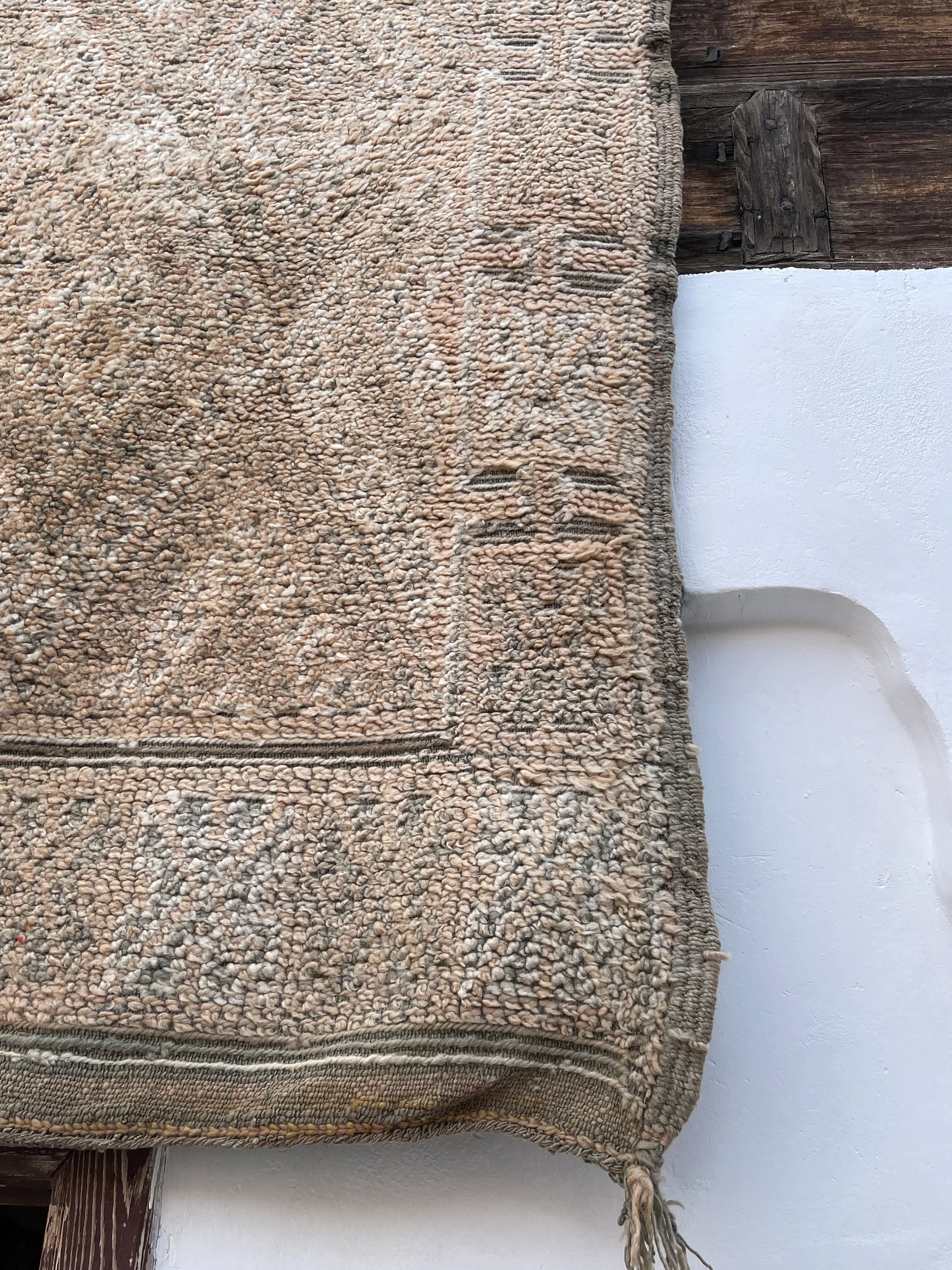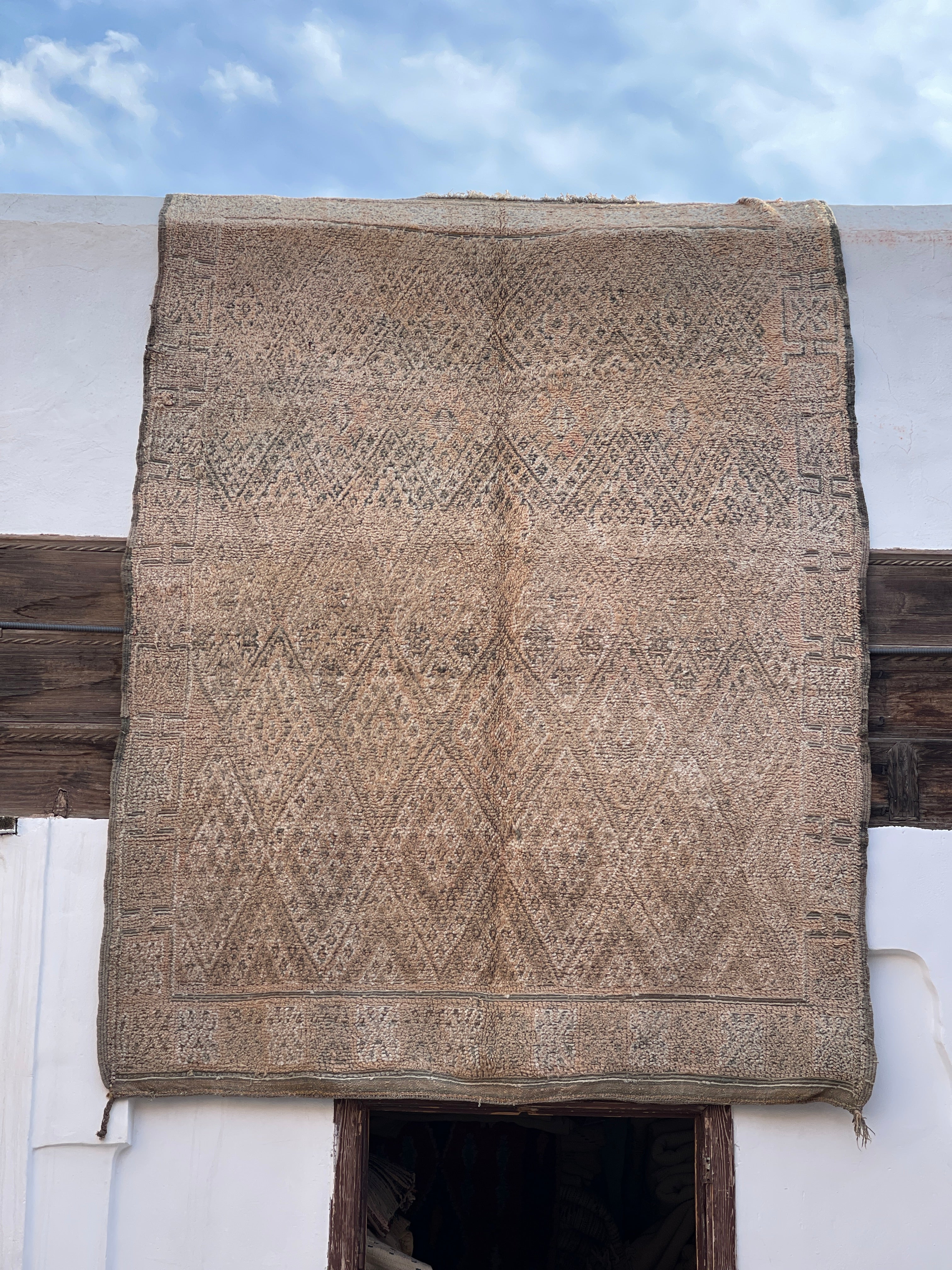 Dit prachtige vintage traditioneel tapijt is 100% handgemaakt door de Berber vrouwen in het Atlasgebergte.