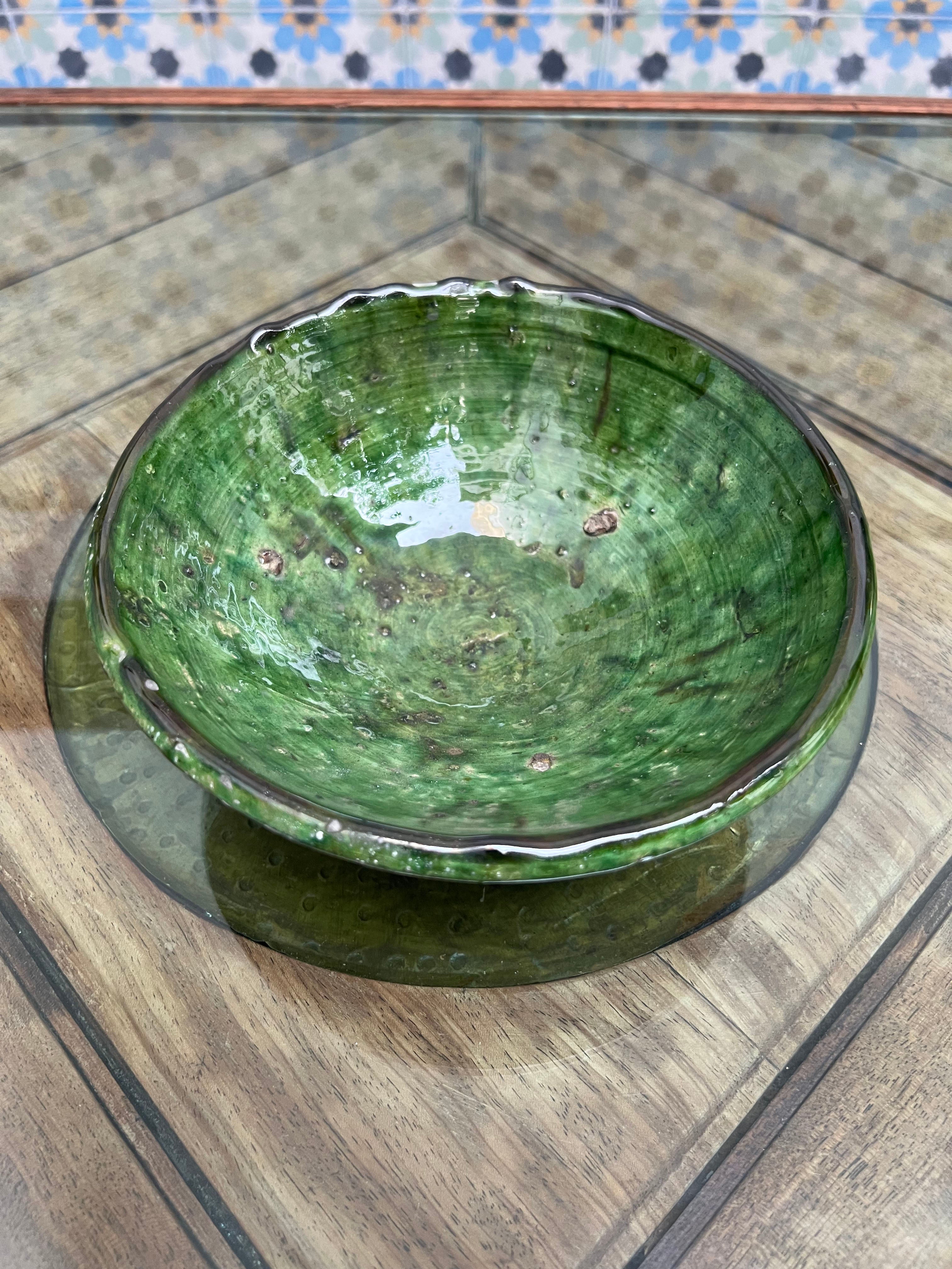 Handgemaakt product uit Tamegroute, Marokko. Grof aardewerk gemaakt van rode klei en beschilderd volgens eeuwenoude techniek.